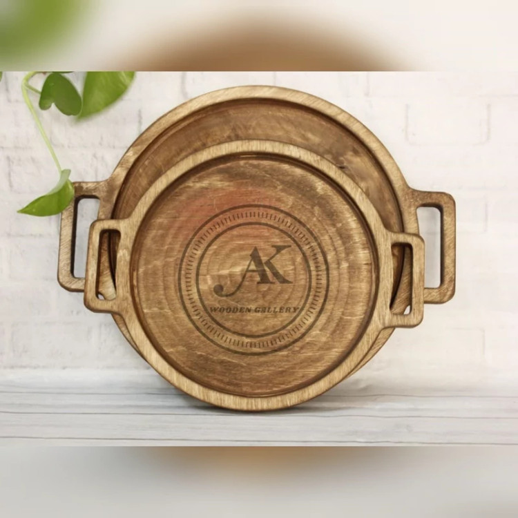 سینی چوبی گرد دسته دار جفتی