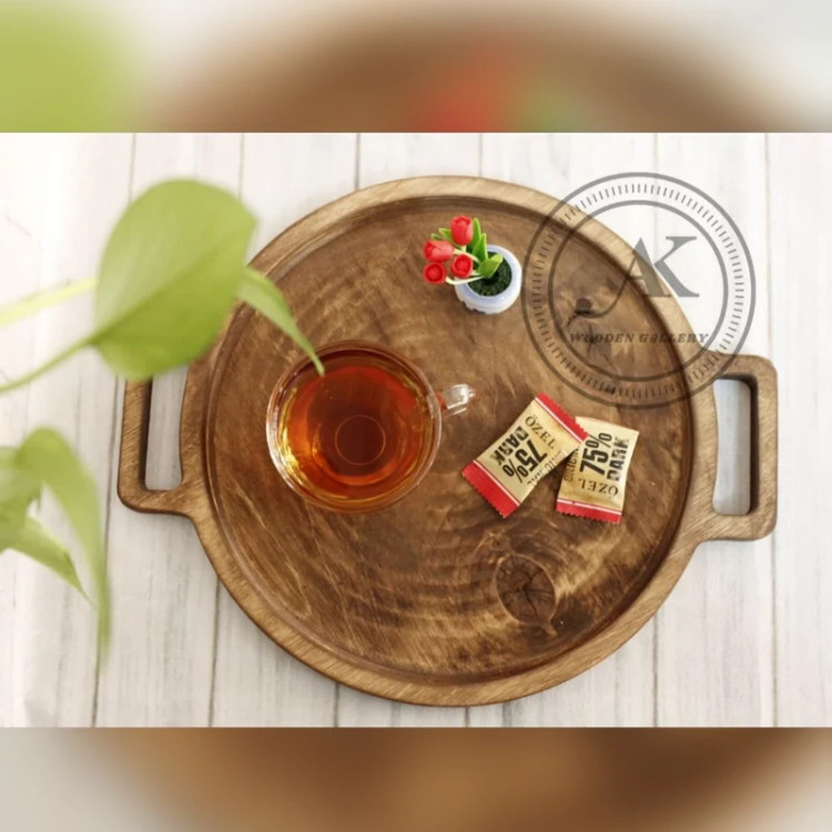 سینی چوبی دسته دار گرد سایز 30سانت