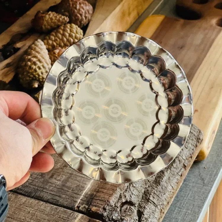 سینی استیل کوچک خرما خوری لب کنگره ای قطر 15 سانت