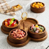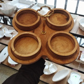 خرید با قیمت ارزان اردوخوری چوبی 4خانه گرد دسته دار