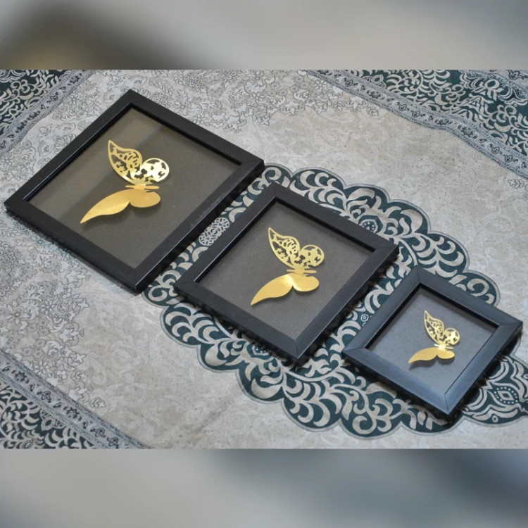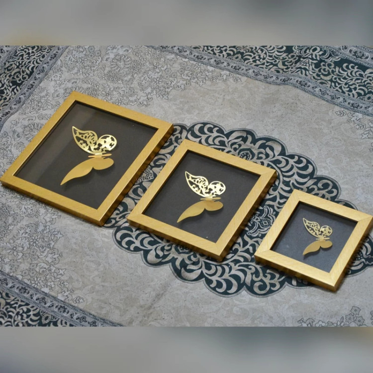 خرید با قیمت ارزان ست ۳عددی تابلو پروانه طلایی