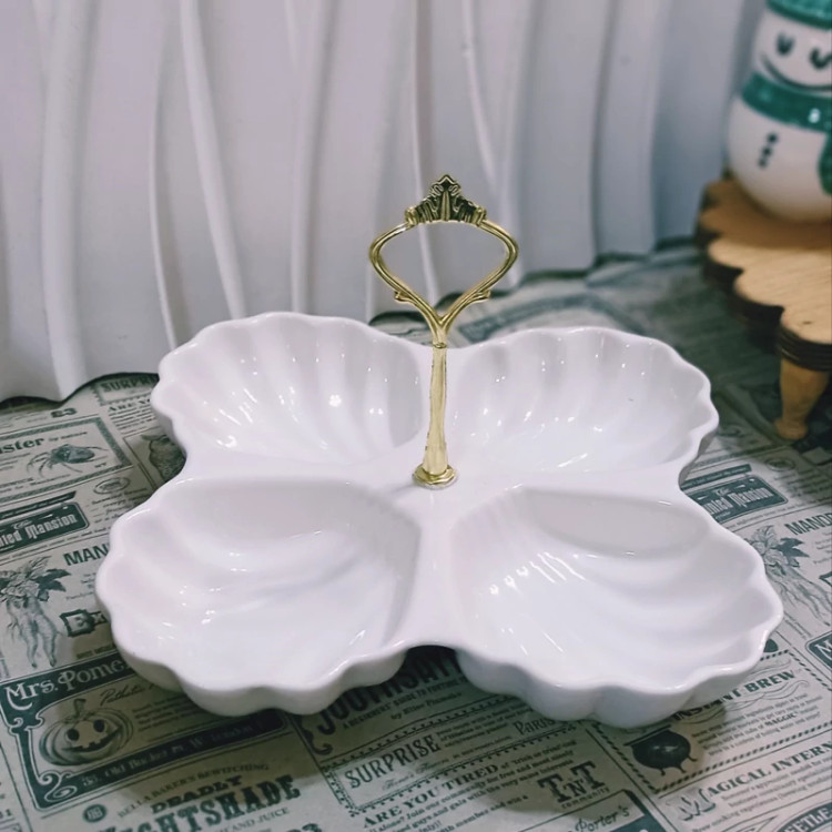 ظرف سرامیکی دسته دار مدل 4 خانه طرح صدف