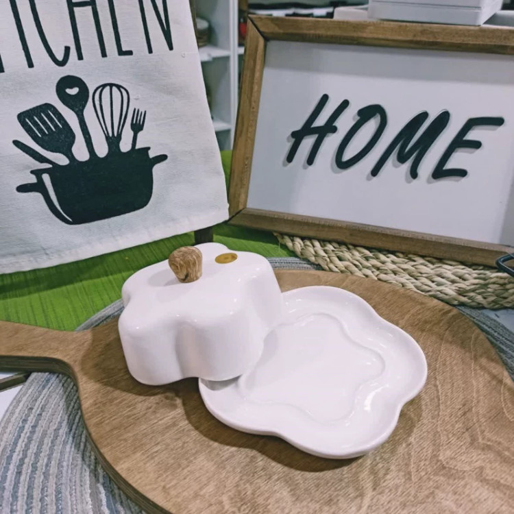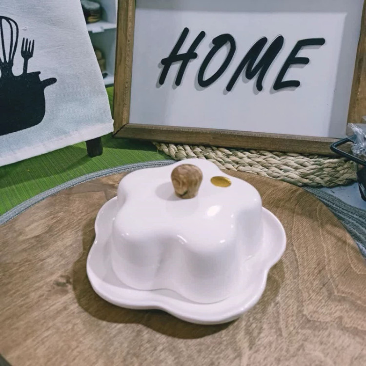 خریدارزان قیمت کره خوری سرامیکی طرح گل دسته چوبی