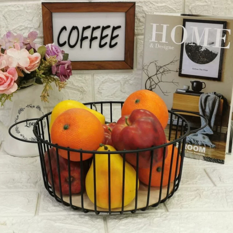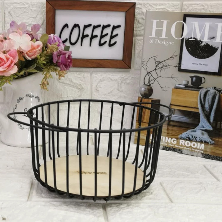 سبد میوه فلزی کف چوبی قطر 20 سانت
