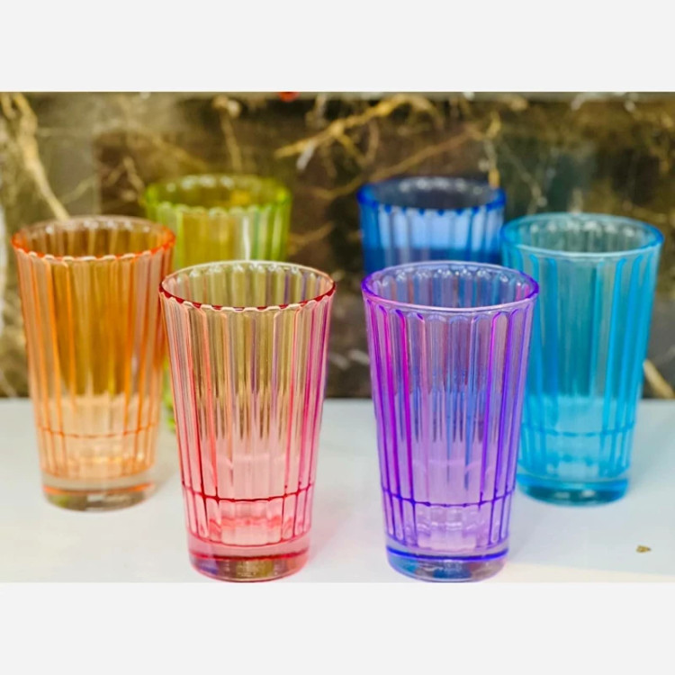 لیوان رنگی شیشه ای لیوان رنگی 6عددی طرح الماس با ارسال رایگان