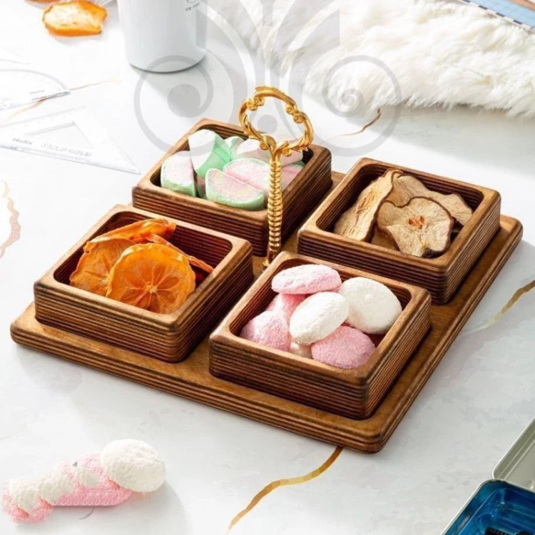 ظرف چوبی 4 خانه دسته دار اردوخوری چوبی آجیل خوری چوبی