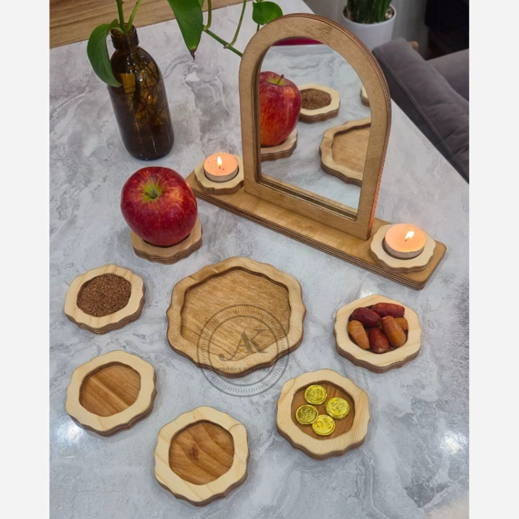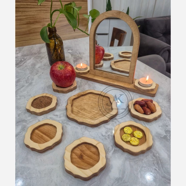 ست هفت سین چوبی 11 پارچه سفره هفت سین چوبی 7سین چوبی طرح سنتی