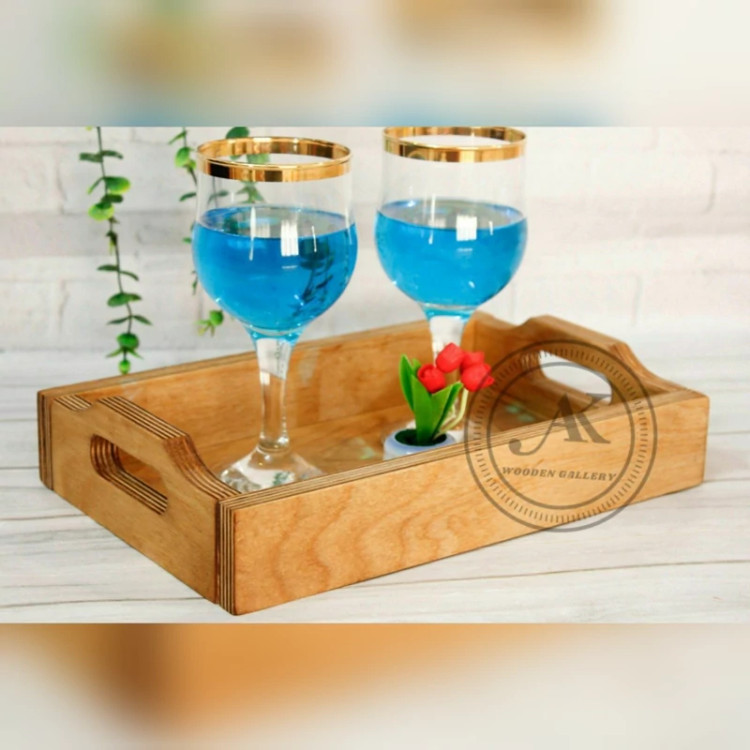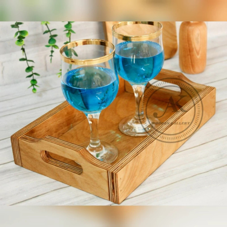 خرید با قیمت ارزان سینی پذیرایی چوبی دسته دار مدل لبه دار