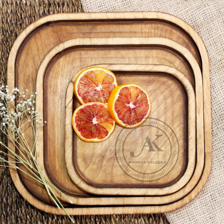 بشقاب چوبی مربع 3 سایز با چوب درجه یک قابل شستشو