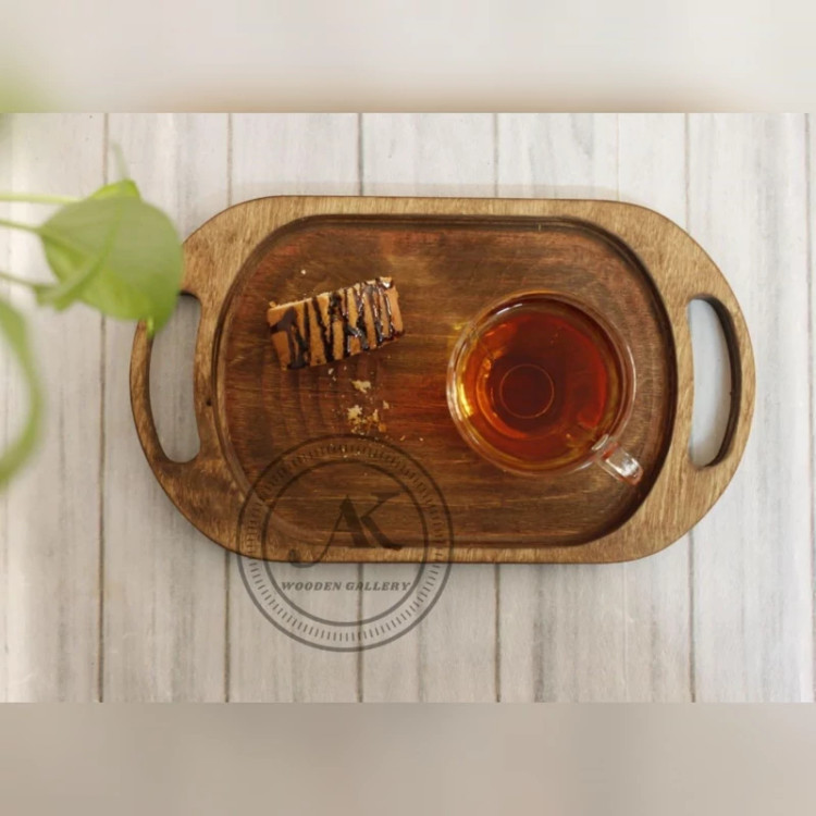 سینی دسته دار بیضی چوبی
