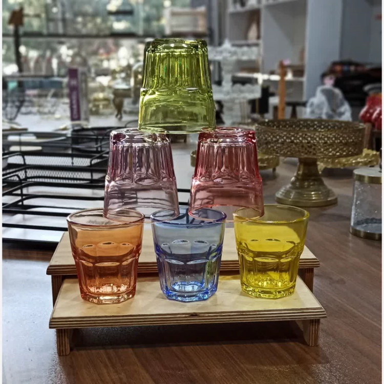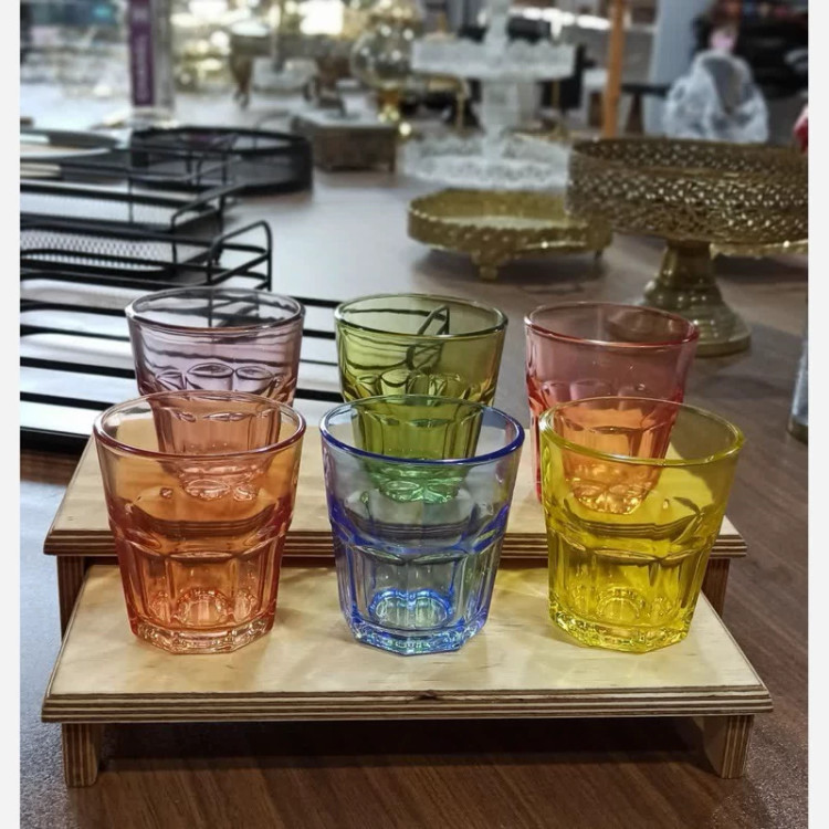 نیم لیوان شیشه ای 6 رنگ لیوان رنگی طرح کیوتو با ارسال رایگان