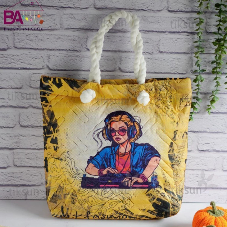 ساک خرید پارچه ای طرح فانتزی سایز 25 در 25 سانت