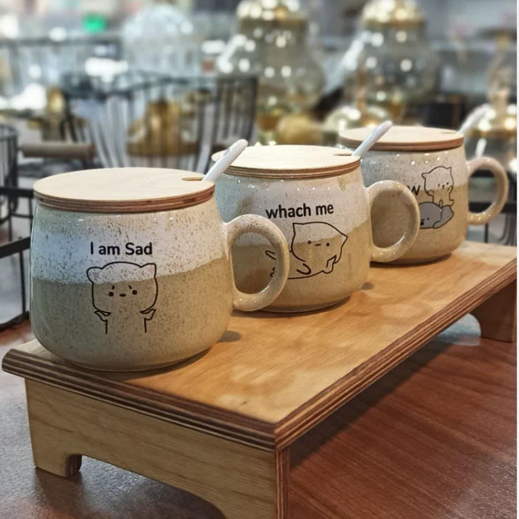 خرید با قیمت ارزان ماگ سرامیکی درب چوبی قاشق دار