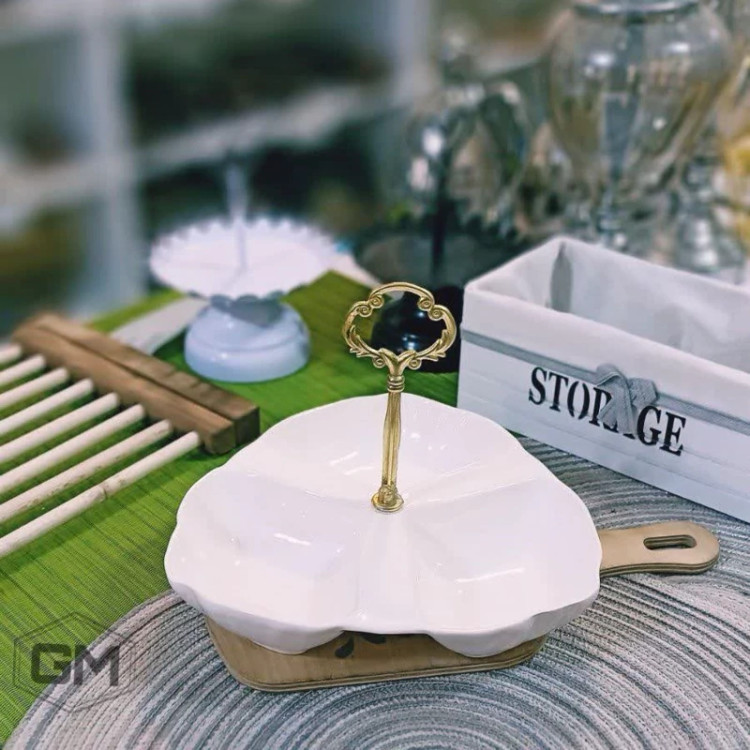 خرید ارزان قیمت ظرف سرامیکی ۳خانه دسته دار