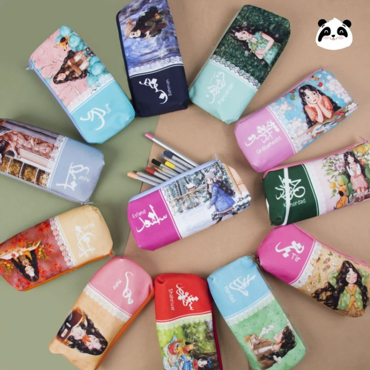 جامدادی فانتزی مخمل چاپ دار مدل تک زیپ