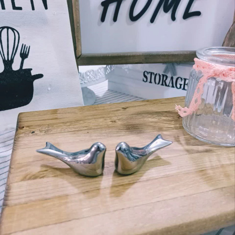 مجسمه گنجشک سرامیکی نقره ای اکسسوری 2عددی سایز مینی