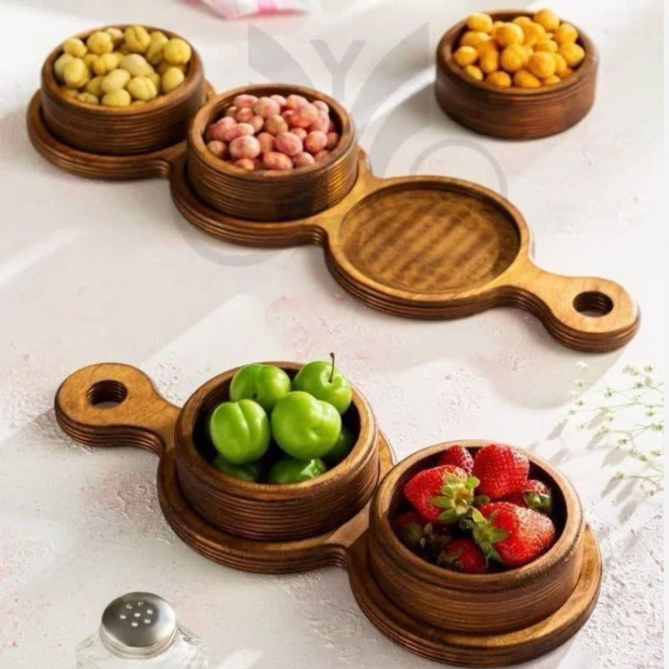 اردو خوری چوبی سه خانه ظرف چوبی دسته دار گرد