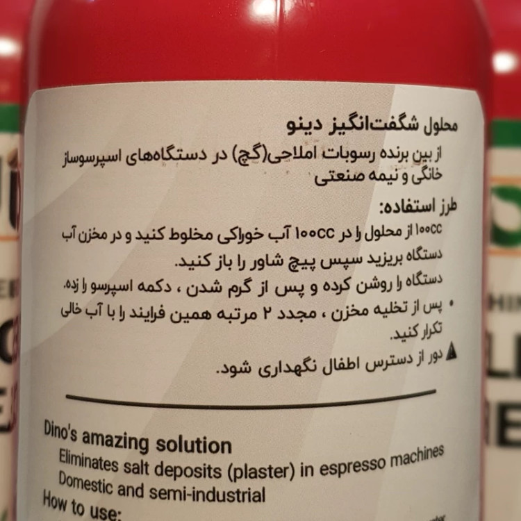 مایع دینو دیسکلیر تحت لیسانس ایتالیا بسیار کاربردی.توان بالای مثال زدنی برای سرویس های کامل و گرفتگی ها و سرویس های دوره ایی بدون آسیب به اجزای داخلی دستگاه میتوان از این محصول استفاده کرد.
