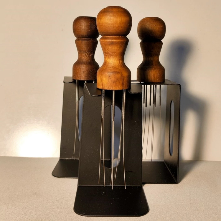 نیدل چوبی با استند فلزی ، بسیار شکیل و کاربردی ، رشته های فنر دار که باعث کنترل بهتر در پخش و عصاره گیری میشود ،