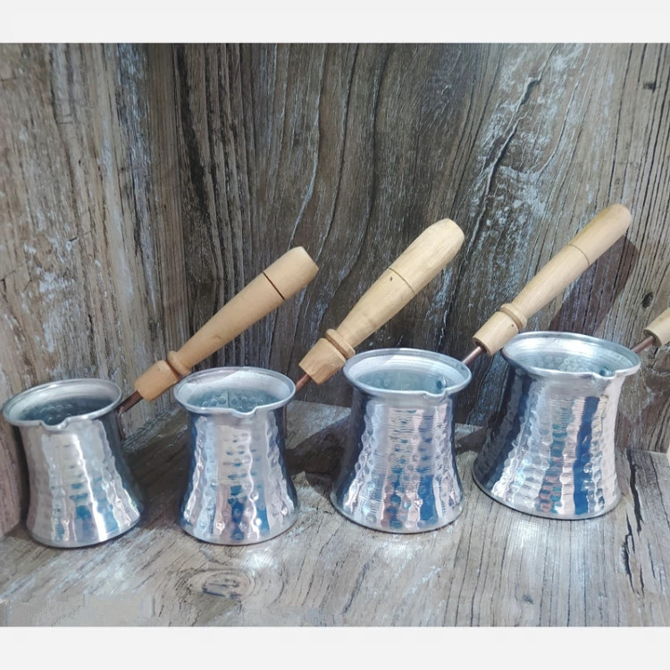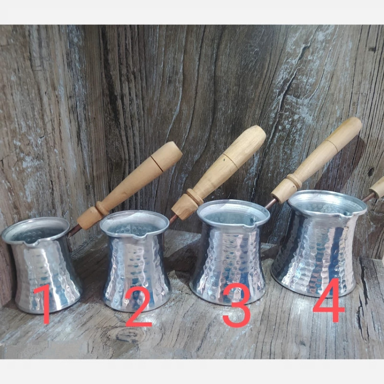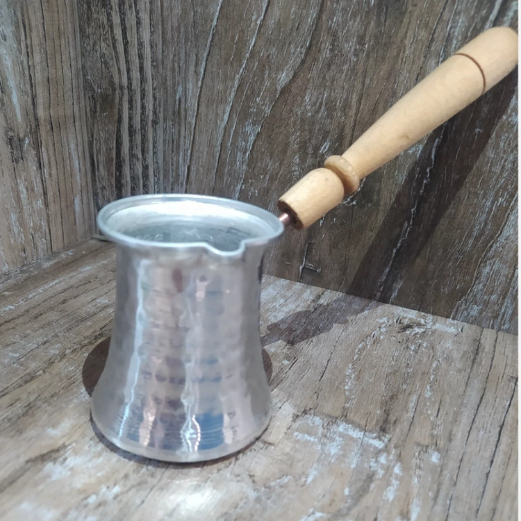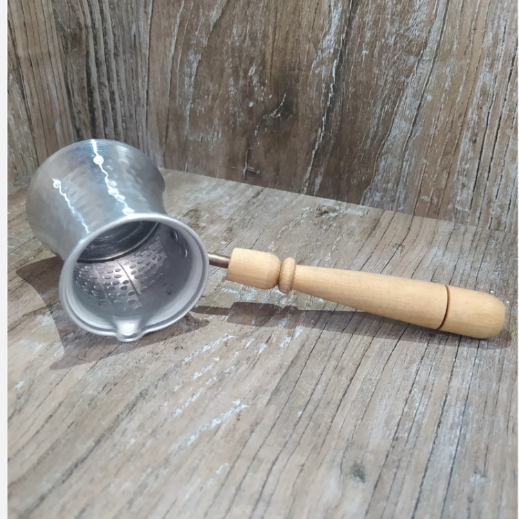 جذوه یا قهوه جوش سایز یک (جنس روی،بدنه چکشی،دسته چوبی)