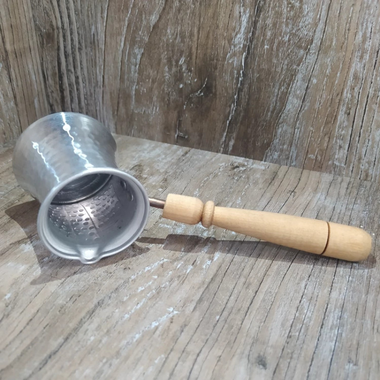جذوه یا قهوه جوش سایز 4 (جنس روی ،بدنه چکشی،دسته چوبی)