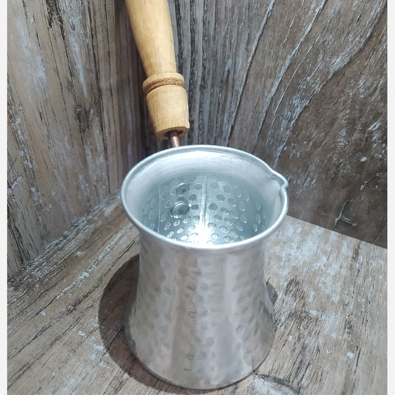 جذوه یا قهوه جوش سایز 4 (جنس روی ،بدنه چکشی،دسته چوبی)