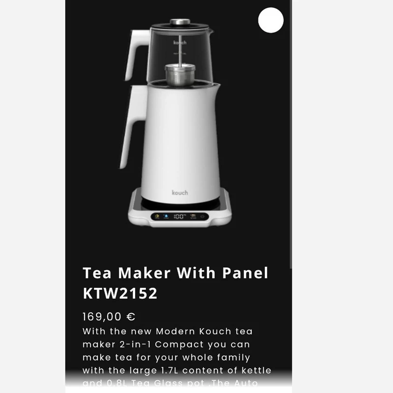 توان مصرفی: 2200 وات – ظرفیت کتری: 2.2 لیتر – ظرفیت قوری: 0.8 لیتر – جنس بدنه کتری: استیل دوجداره – جنس بدنه قوری: شیشه مقاوم در برابر حرارت – قابلیت چرخش 360 درجه: کتری و قوری هر دو قابلیت چرخش 360 درجه را دارند – قابلیتها: خاموشی خودکار پس از جوش آمدن آب و گرم نگهدارنده – کنترلپنل لمسی: روی پایه نگهدارنده برای تنظیمات ساده و راحت – صفحه نمایش: نمایشگر میزان دمای لحظهای آب _رنگ : خاکستری ویژگیها و مزایای محصول 1. توان بالا: با توان 2200 وات، این چای ساز میتواند در کمتر از 5 دقیقه آب را به جوش بیاورد و چای تازه دم و خوش طعمی برای شما و خانواده فراهم کند. 2. ظرفیت مناسب: کتری با ظرفیت 2.2 لیتری و قوری با ظرفیت 0.8 لیتری، مناسب برای پذیرایی از 15 نفر به طور همزمان است. 3. جنس بدنه با کیفیت: بدنه استیل کتری دوجداره و قوری شیشهای مقاوم در برابر حرارت، دوام و ایمنی بالایی را در حین استفاده تضمین میکنند. 4. خاموشی خودکار: قابلیت خاموشی خودکار پس از رسیدن به دمای جوش، از بخار شدن آب بیش از حد و کاهش سطح آب جلوگیری میکند. 5. گرم نگهدارنده: این دستگاه دارای قابلیت گرم نگهدارنده است که به شما اجازه میدهد چای برای مدت طولانی گرم و تازه باقی بماند، بدون از دست دادن طعم و عطر. 6. صفحه نمایش دما: صفحه نمایش دیجیتال دمای لحظهای آب را نشان میدهد و امکان کنترل دقیق دما را فراهم میکند. 7. کنترلپنل لمسی: با استفاده از پنل لمسی، به راحتی میتوانید تنظیمات دلخواه خود را اعمال کنید. 8. قابلیت شستشوی آسان: قطعاتی مانند فیلتر به راحتی جدا شده و قابل شستشو هستند که فرآیند نظافت دستگاه را بسیار ساده میکند. کاربرد و مزایا این چای ساز با توجه به ظرفیت بالا و توان مصرفی فوقالعاده، برای استفادههای خانگی، دفاتر کار و حتی مهمانیها مناسب است. توان 2200 واتی و سرعت بالای جوش آوردن آب، این دستگاه را به ابزاری ایدهآل برای تهیه سریع و آسان چای تبدیل میکند. همچنین، قابلیت گرم نگهداشتن چای باعث میشود چای شما همیشه آماده نوشیدن باشد، بدون اینکه نیاز به جوش مجدد داشته باشد.