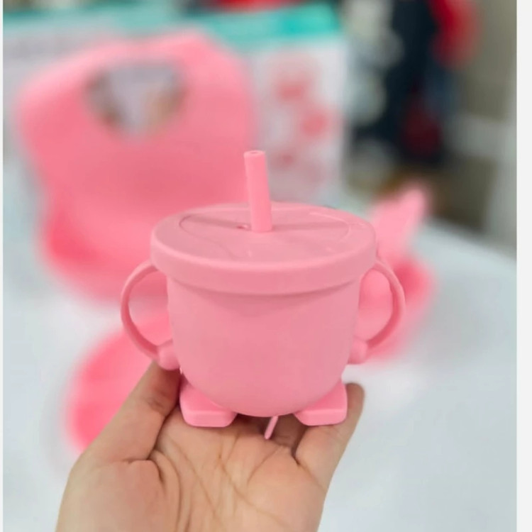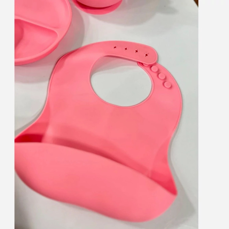 ست سیلیکونی غذاخوری نوزاد با جنس ضدحساسیت، پایه ضدلغزش و طراحی فانتزی، مناسب برای نوزادان بالای 6 ماه ظرف غذای نوزاد 7 تیکه شامل: بشقاب چسبان سه قسمتی قاشق و چنگال سیلیکون کاسه چسبان لبه دار سیلیکونی پیش بند تمام سیلیکون دکمه دار با قابلیت تنظیم سایز لیوان درب دار فاقد مواد سمی و مضر bpa free