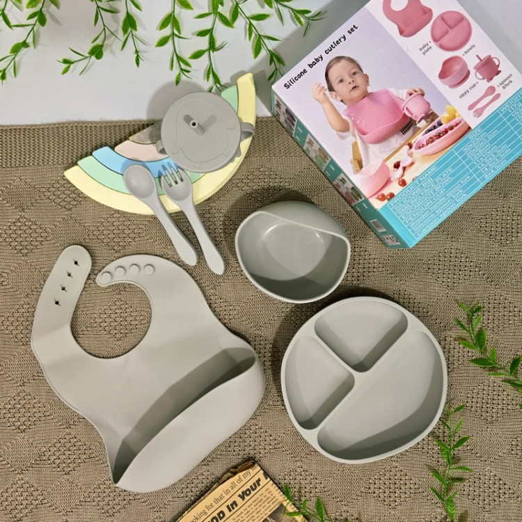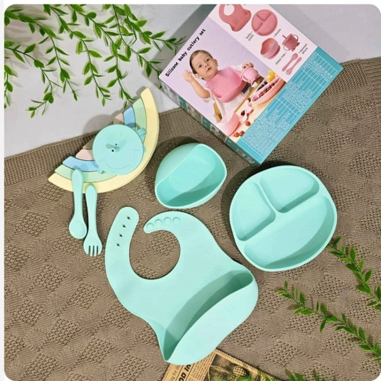 ظرف غذای کودک سیلیکونی وارداتی silicone baby cutlery set