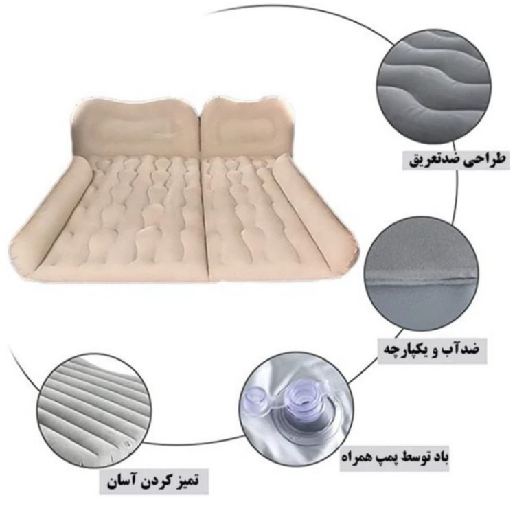 این محصول دارای دو عد پایه بادی بزرگ متصل به هم میباشد که فضای خالی کف ماشین را میپوشانند و یک سطح هم ارتفاع با صندلی عقب ماشین را برای قرارگیری تشک ماشین ایجاد میکنند.