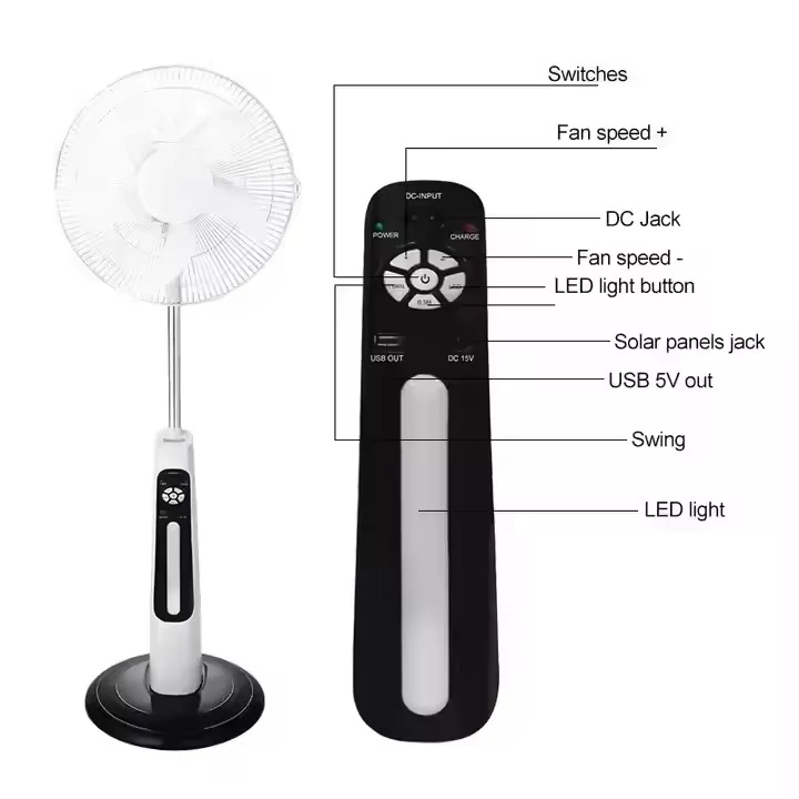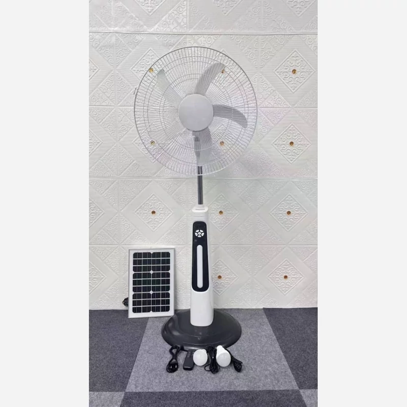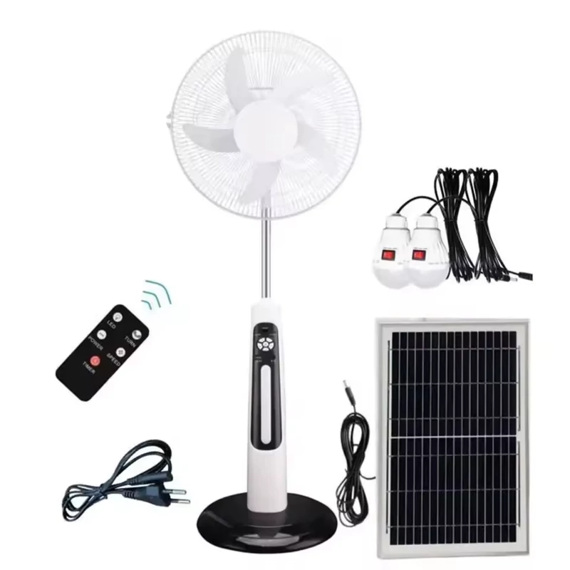پنکه شارژی ایستاده 16 اینچ دارای پنل خورشیدی و دو لامپ سیار