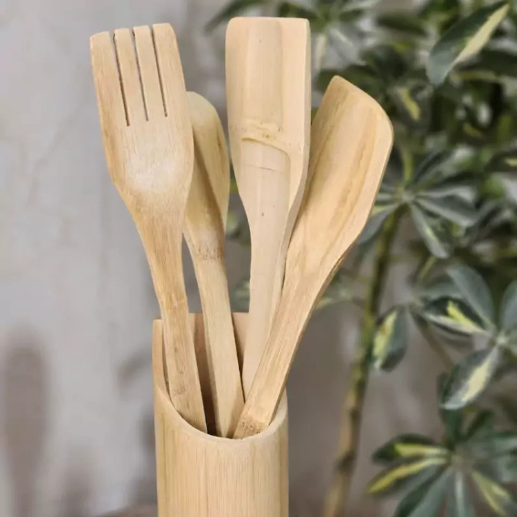 ست کفگیر چوبی بامبو 5 پارچه پایه دار سایز بزرگ