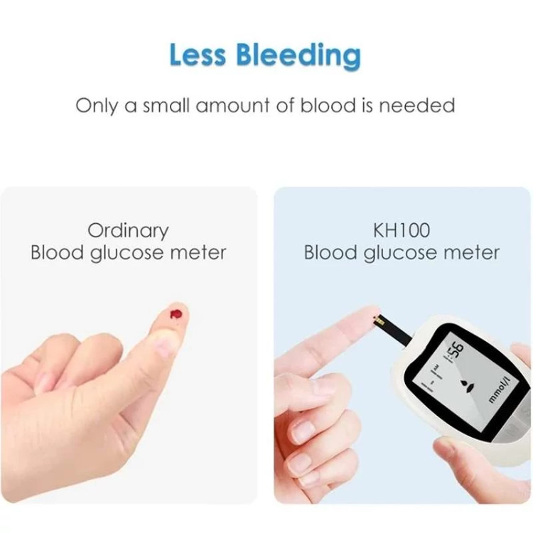 دستگاه تست قند خون یا گلوکومتر یک وسیله بسیار کارآمد پزشکی است که برای تعیین غلظت گلوکز خون مورد استفاده قرار میگیرد. هر سال، افراد بسیاری به دیابت مبتلا میشوند، که برای تعیین و درمان این بیماری، باید قند خون افراد را توسط دستگاهها و آزمایشات دقیقی بررسی و تعیین شود. در حال حاضر دستگاههایی تولید و به بازار عرضه شدهاند که با استفاده از آنها هر فردی میتواند در خانه خود میزان قند خون خود و بقیه افراد خانواده را تعیین کند دستگاه تست قند خون یا گلوکومتر، راحتترین روش برای سنجش میزان قند خون شما است. شما خیلی راحت میتوانید با استفاده از این دستگاه در خانه، میزان قند خون خود را اندازه بگیرید. نحوه استفاده از این وسیله بسیار راحت است. هنگام خرید، فروشنده، همراه دستگاه تست قند خون، یک وسیله شبیه به خودکار، تعدادی سوزن و نوارهای کاغذی مخصوصی نیز به شما میدهد. یکی از سوزنها را داخل این وسیله که شبیه به خودکار است، قرار دهید. سپس یکی از انگشتهای خود را با آن سوراخ کرده و یک قطره خون روی نوار کاغذی که قبلاً داخل دستگاه قرار دادهاید، بچکانید. دستگاه، میزان قند خون شما را تعیین کرده و به شما نشان میدهد. پس از اینکه میزان قند خون خود را فهمیدید، سوزن و نوار استفاده شده را دور بیندازید. کد نوار تست : بدون کد (اتو کد ، بدون کد) تعداد نوار تست همراه دستگاه : ۵۰ عدد تعداد سوزن تست (لانست) همراه دستگاه : ۳۰ عدد کیف نگهدارنده : دارد قلم سوزن : دارد باتری : باتری سکه ای در بسته موجود است. مدل دستگاه : Kh-100 مدت زمان انتظار اندازه گیری قندخون : ۷ ثانیه