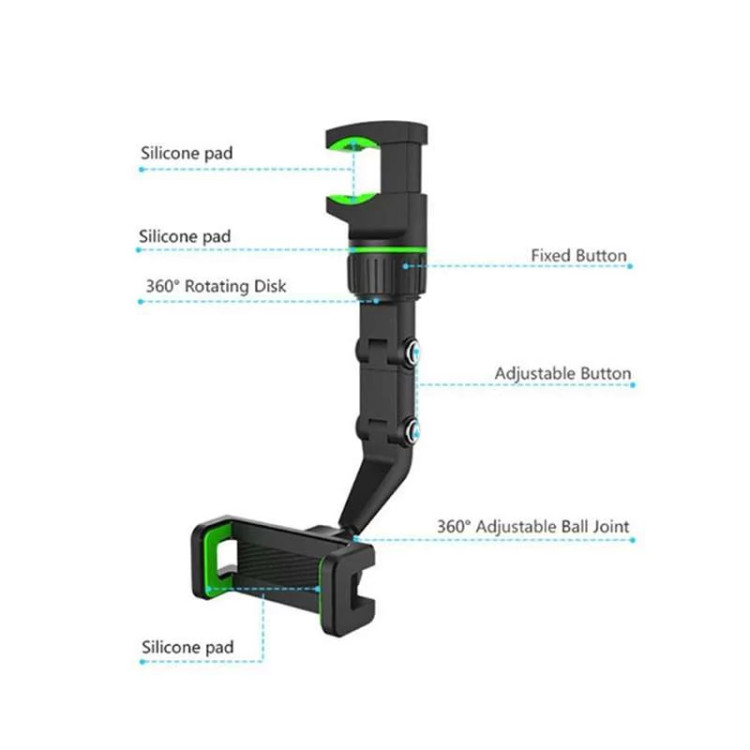 💣 لازم برای هر خودرو ✨نگهدارنده موبایل زیر آینه ای خودرو✨ در عین حال که استفاده از موبایل در هنگام رانندگی لازم است، گرفتن موبایل در دست هنگام رانندگی میتواند خطرناک باشد. این محصول به راحتی بر روی آینه خودرو نصب شده و در نگه داشتن گوشی موبایل در خودرو و استفاده ی آن در حین رانندگی برای مسیریابی کمک میکند. علاوه بر آینه خودرو این محصول میتواند برای نصب شدن روی میز، صندلی خودرو و ... مورد استفاده قرار بگیرد. جنس بدنه این محصول از پلاستیک فشرده و با کیفیت است و طول عمر بالایی دارد و میتواند نیاز های شما را برای استفاده از موبایل در هنگام رانندگی و ... فراهم کند. گیره ی این محصول دارای فنر با کیفیت و بادوام است که تا 10 سانتی متر قابل باز شدن است و میتوان از آن برای انواع گوشی های همراه با ابعاد مختلف استفاده کرد. همچنین این نگهدارنده با داشتن قابلیت چرخش 360 درجه این امکان را به شما میدهد که از موبایل خود به صورت عمودی و افقی استفاده کنید و در زمان نیاز آن را به راحتی تنظیم کنید. طول بدنه این محصول نیز 20 سانتی متر بوده و این قابلیت را به شما میدهد تا در زمان استفاده درحین رانندگی نیاز به چرخاندن بیش از اندازه سر خود نباشید.
