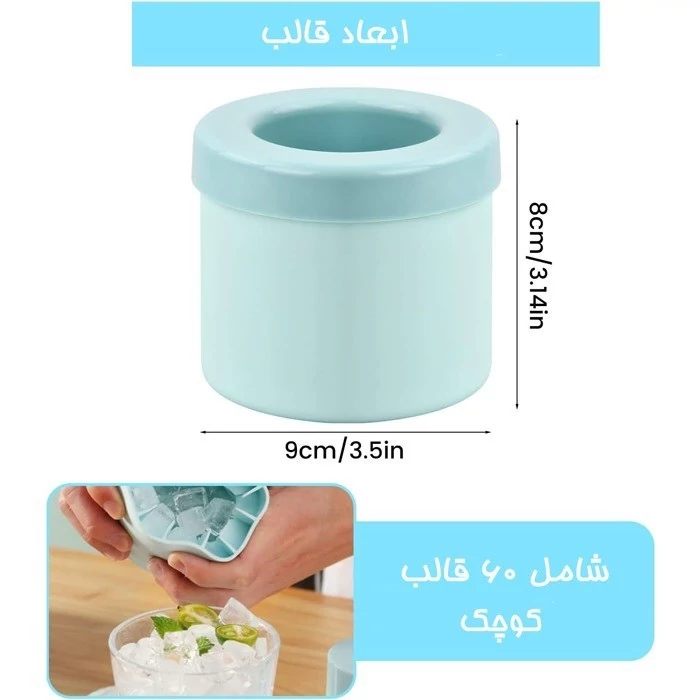 دارای مجموعاً 60 قالب یخ مکعبی کوچک درون لیوان
