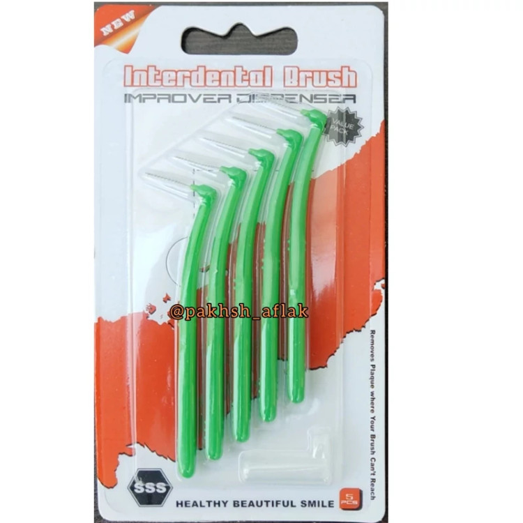 مسواک ارتودنسی (مسواک بین دندانی) شماره یک برای پاک کردن تمیز دندان ها بسته پنج عددی